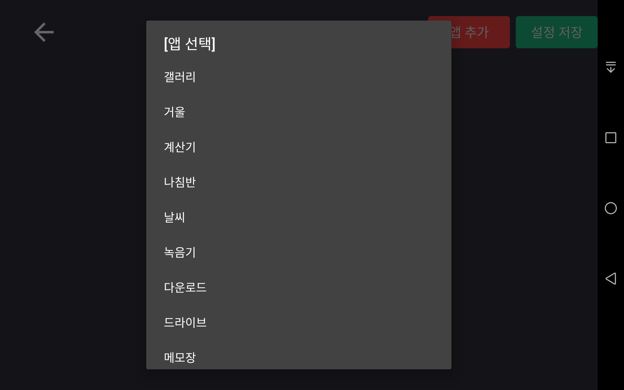 추가 할 앱을 선택합니다.
