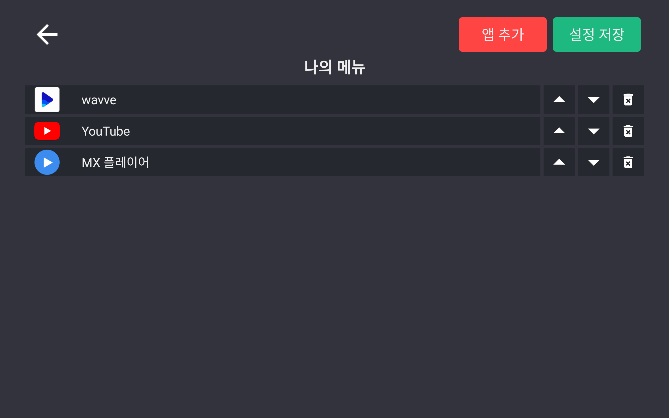 나의 메뉴에 앱을 추가한 후 우측 버튼으로 순서를 바꾸거나 삭제합니다.